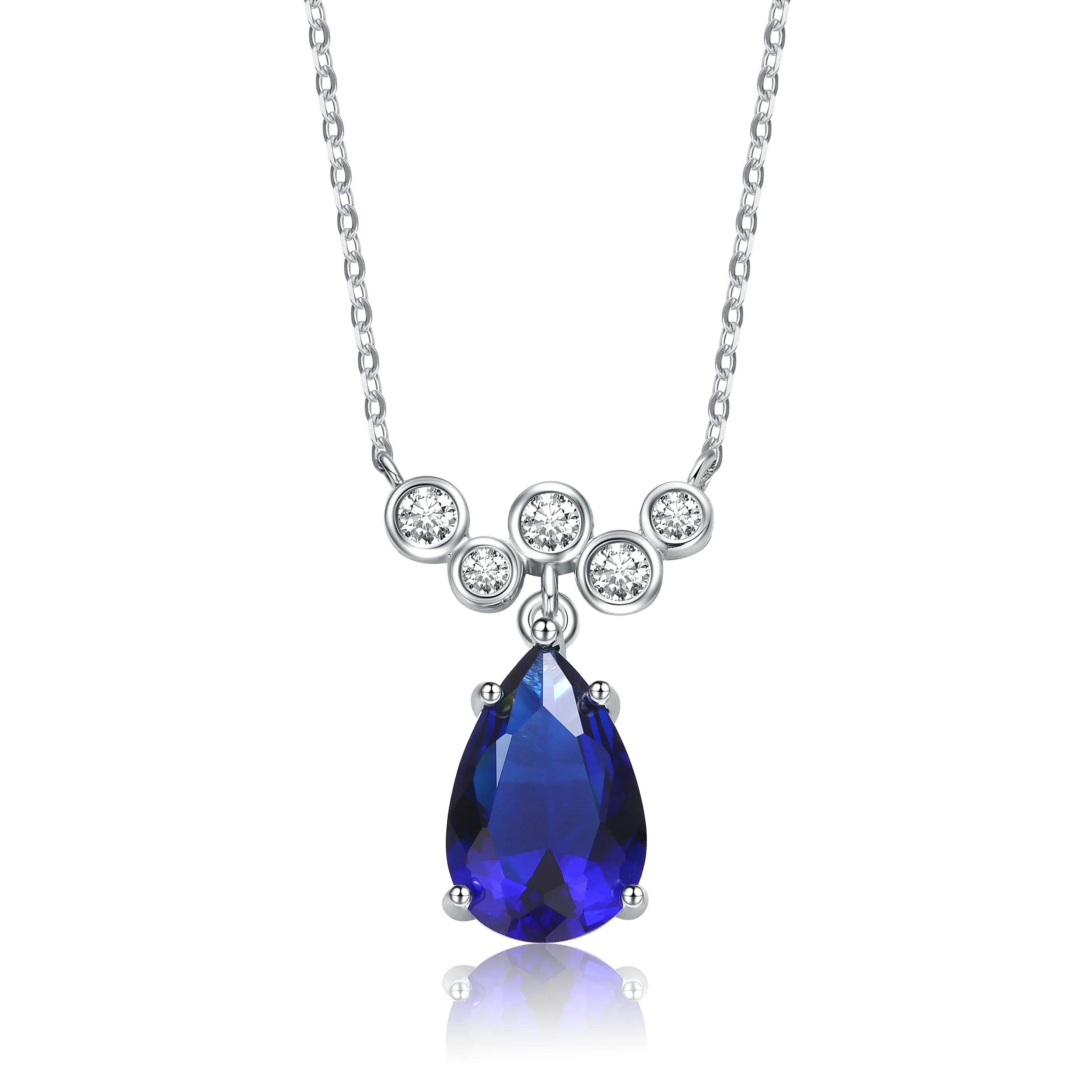 Fit for royalty and perfect for every day, select this chevron necklace as a gift for your beloved or as a treat to yourself. A dark royal blue sapphire hangs from bezels filled with round brilliant cut cubic zirconias gracefully attached to a cable chain. A lobster clasp secures this necklace crafted in 14k yellow gold plated sterling silver. Available in rhodium plating as well.